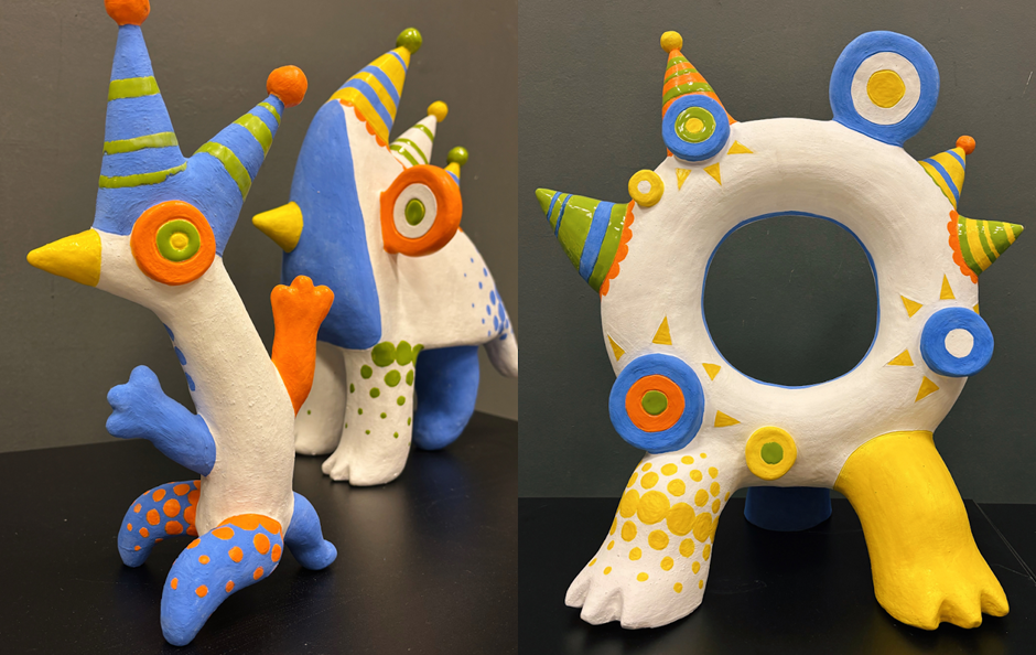 Сами скульптуры по формообразованию выросли из народной игрушки, что тоже перекликается с выбранной темой. Получились образы каких-то то ли зверей, то ли динозавров, то ли клоунов».