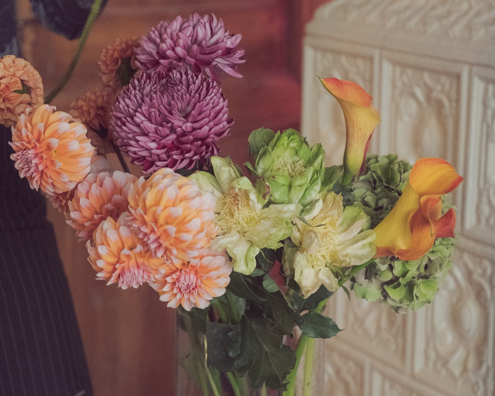 “В сентябрьских букетах мы найдем высокие уральские травы, гортензию землянистых оттенков, яркие георгины, необычную розу сорта вегги, больше похожую на капусту. Декоративная капуста (Брассика) в осенних композициях, кстати, тоже встречается.