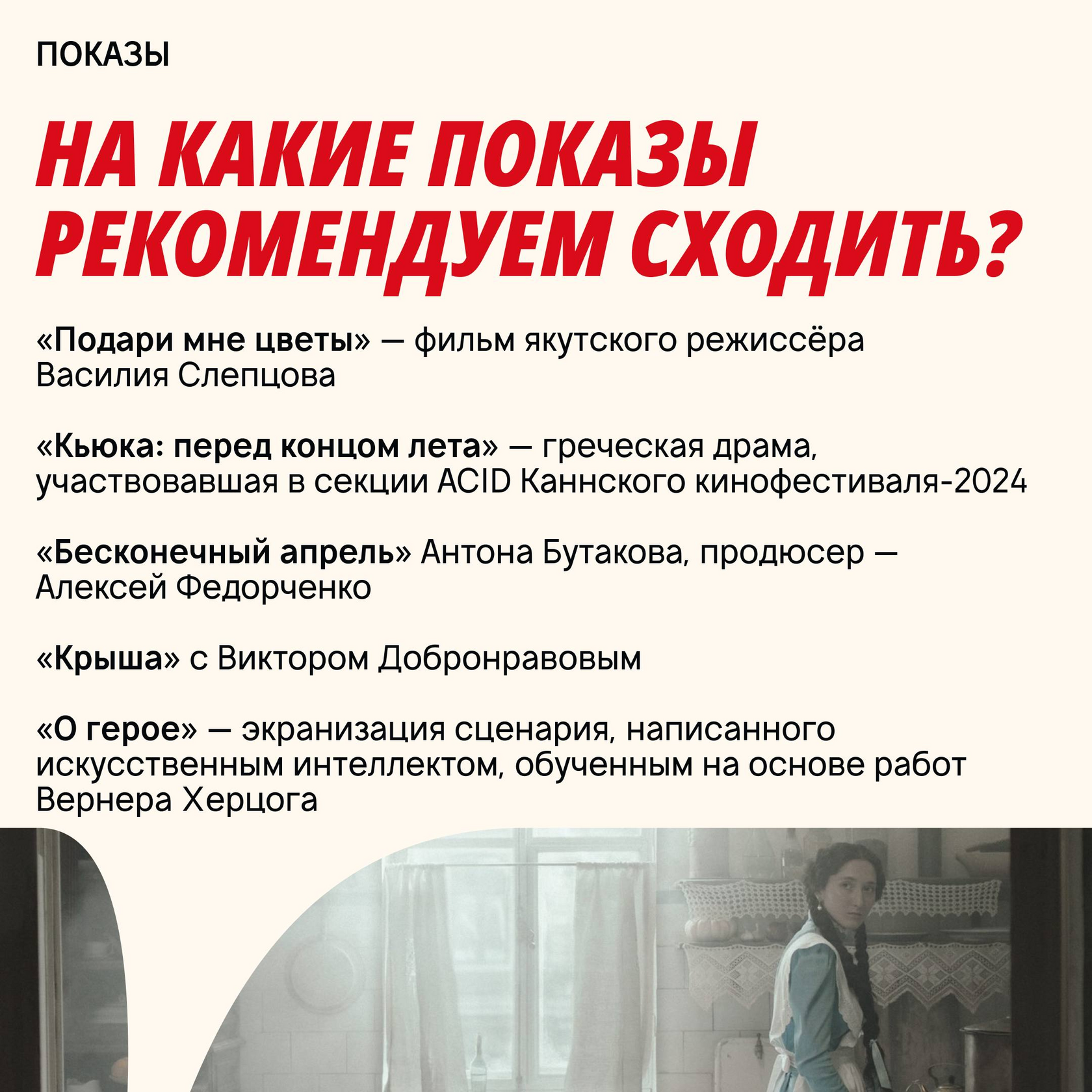 Проект стал площадкой для представления фильмов молодых режиссеров с евразийского континента. В этом году главная тема фестиваля — искусственный интеллект в кинопроизводстве. Это отражено и в программе, к примеру, зрители увидят картину, сценарий к которой был написан самим ИИ, обученном на основе работ Вернера Херцога.